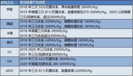 軟包代表企業(yè)能量密度開(kāi)發(fā)進(jìn)展