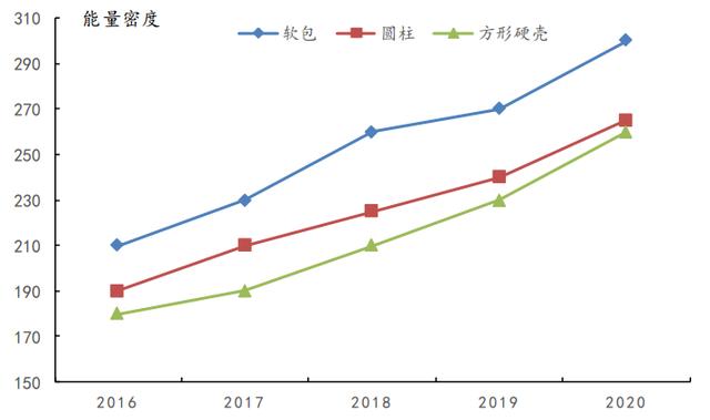 主流軟包電池企業(yè)單體能量密度進(jìn)階之路。業(yè)內(nèi)企業(yè)推出的量產(chǎn)軟包產(chǎn)品,2016年行業(yè)平均水平在 200-210Wh/Kg, 2018 年電池企業(yè)軟包能量密度達(dá)到 260Wh/Kg,到 2019 年,企業(yè)已經(jīng)開(kāi)發(fā)出 300Wh/Kg 的軟包電池。目前,國(guó)內(nèi)外軟包企業(yè)紛紛布局高能量密度軟包電池,以滿足未來(lái)新能車市場(chǎng)的需求。